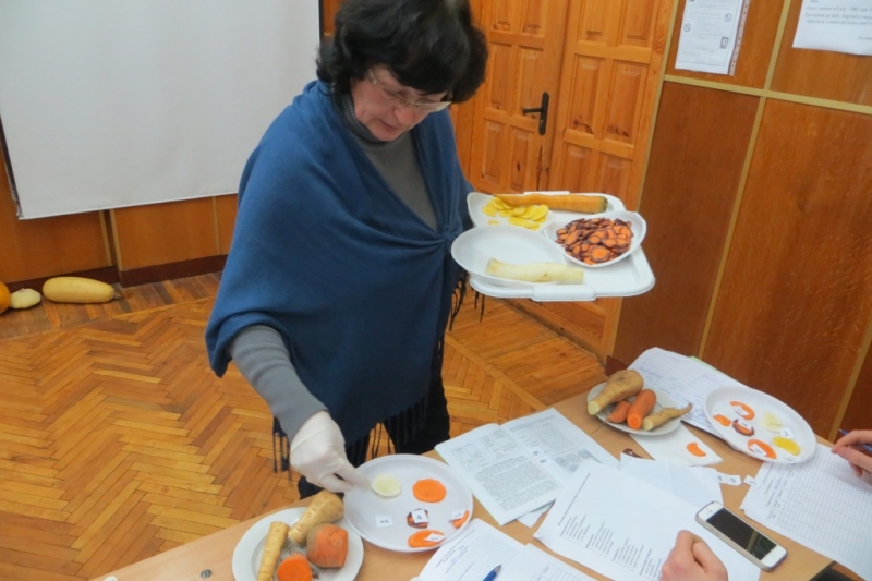 Сортові особливості петрушки, селери, пастернаку визначали за формою та розгалуженням коренеплодів. А завершили лабораторне заняття дегустацією, а саме визначенням смакової оцінки сортів моркви і пастернаку. Основними показниками при дегустації цих коренеплодів є зовнішній вигляд, смак, консистенція, забарвлення, соковитість, за якими й проводили дегустаційну оцінку за 9–и бальною шкалою.