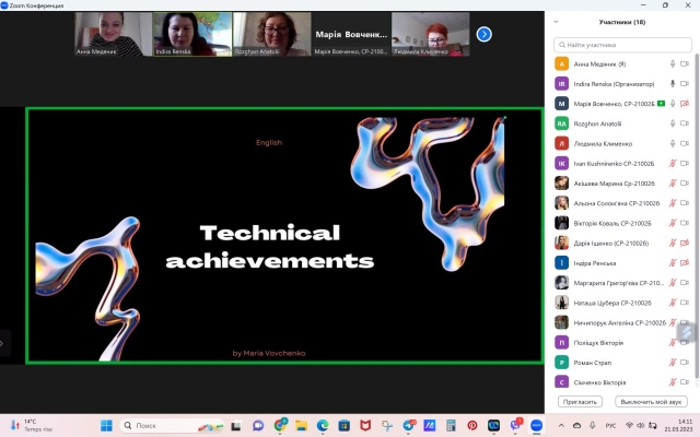Потім Індіра Іванівна разом зі студентам розглянули нову тему, використовуючи презентацію. Виконання граматичних та лексичних вправ за темою поглибило отримані раніше знання та збагатило словниковий запас здобувачів освіти. Викладачка вдало використовувала наступні види активності: говоріння, аудіювання, читання.