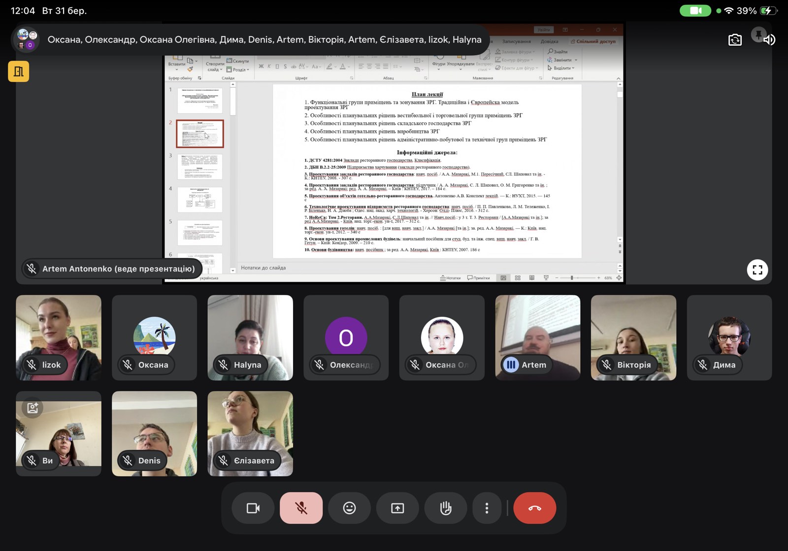 31 березня 2026 року відбулося відкрите заняття на тему «Розроблення планувальних рішень. Проектування функціональних груп приміщень закладів ресторанного господарства», яке провів кандидат технічних наук, доцент кафедри Антоненко Артем Васильович.