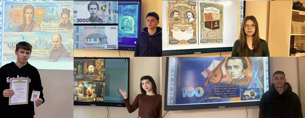 • «Культурний код нації». Учасники створювали дизайн, що відображає духовні символи України. Серед робіт — банкноти з постатями Кобзаря та Лесі Українки, доповнені їх пророчими словами. Деякі студенти запропонували футуристичне бачення: Тараса Шевченко в образі високих технологій, де поєднуються культурна пам’ять і роботизований світ. Вразили також роботи з переосмисленням ідей нашого сучасника — українського музиканта, письменника й телеведучого, лідера гурту «Скрябін», Героя України (посмертно) Андрія Кузьменка (Кузьми Скрябіна): «Живи тут і зараз», «Країна — це ти. Зроби порядок у своїй голові».
