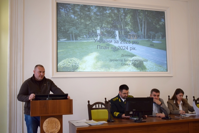 Директор Ботанічного саду НУБіП України Олександр Слива прозвітував про діяльність Ботанічного саду та окреслив основні завдання на поточний 2024 рік.