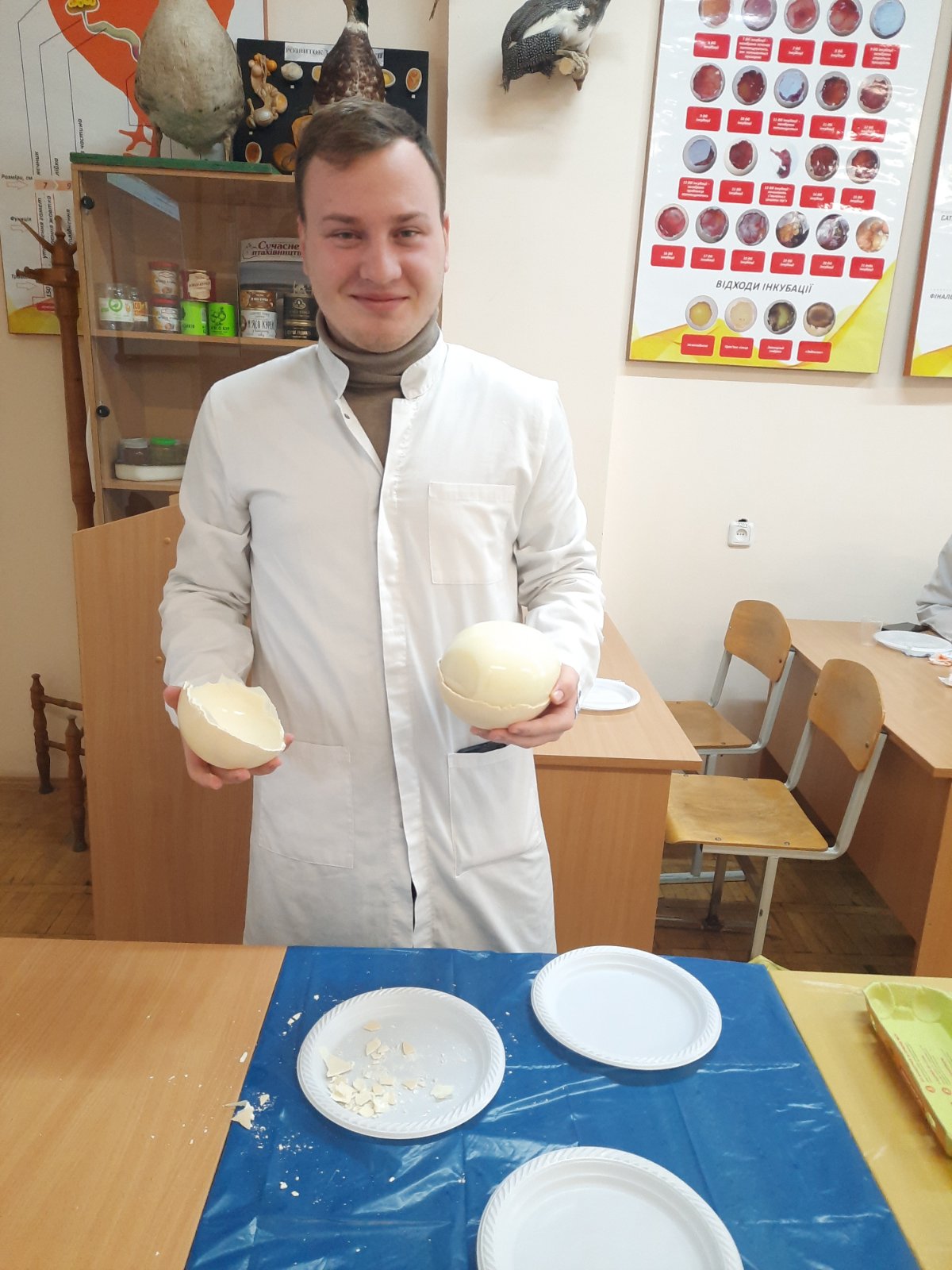 Під час святкування студенти не лише виступили з доповідями та розповіли цікаві факти про яйце, а й креативно проявили себе в мистецькому завданні – вони розмалювали курячі яйця фарбами, перетворивши їх на символ миру та життя. Зображено голуба як знак миру й надії, а маленьке курчатко символізує народження, тепло та початок нового життя. Цей творчий проєкт став не лише яскравою окрасою заходу, а й нагадуванням про гармонію між природою, людиною й світом тварин.