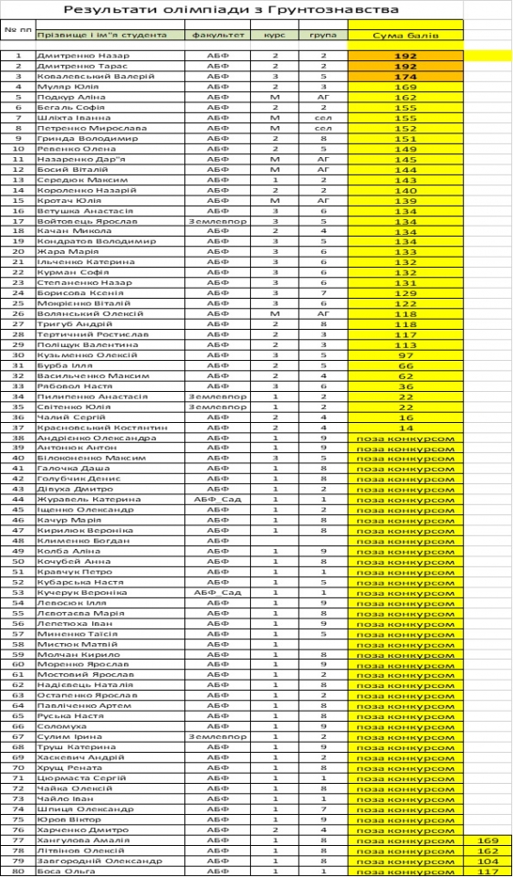 Вітаємо переможців студентської олімпіади з навчальної дисципліни «Грунтознавство»