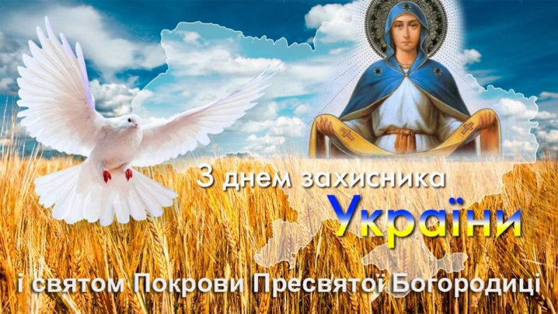 Вітаємо Вас зі святами Покрови пресвятої Богородиці та Днем Захисника України