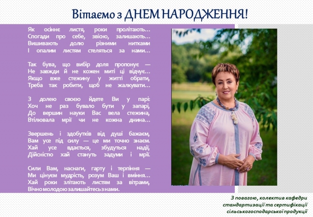 Вітаємо з Днем народження декана факультету Баль-Прилипко Ларису Вацлавівну