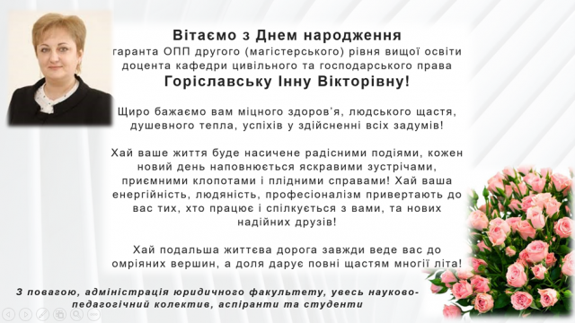 Вітаємо з Днем народження Горіславську Інну Вікторівну!