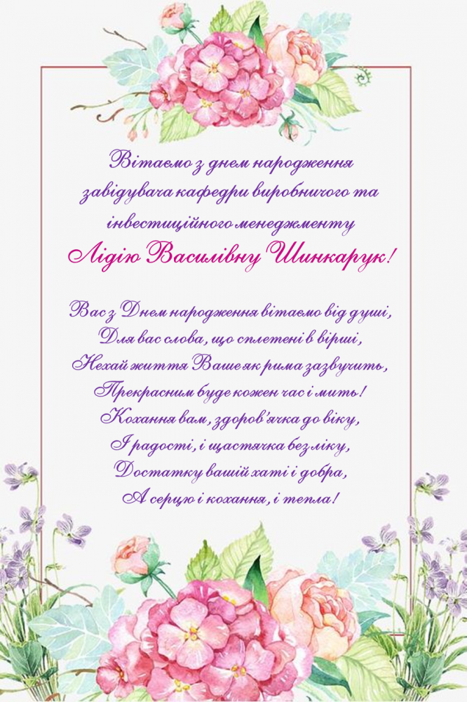 Вітаємо з Днем народження Лідію Василівну ШИНКАРУК! З повагою, колектив факультету аграрного менеджменту нд, 30 вер 2018 - 03:00