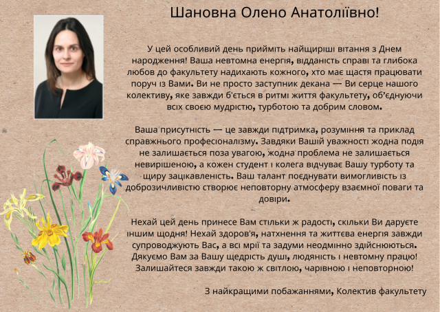 Вітаємо з Днем народження Олену Анатоліївну УЛЮТІНУ!