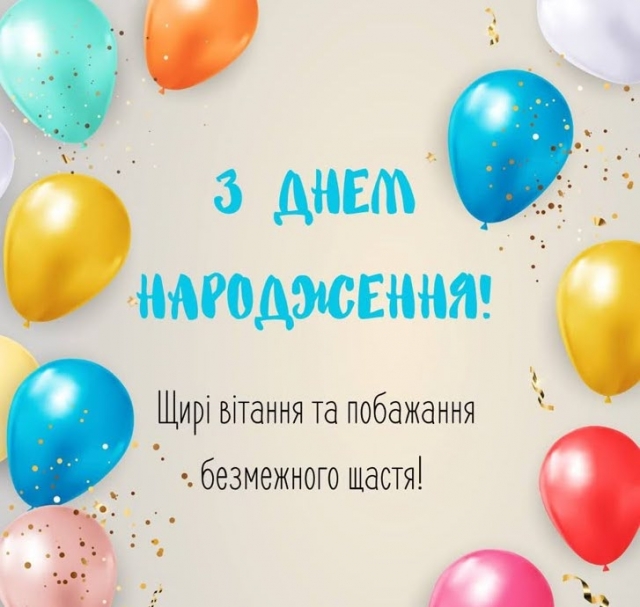 Прийміть щирі наші вітання з Днем народження! Хай доля дарує безліч чарівних митей, позитиву, радості, міцного здоров’я, бадьорості, гарного настрою. Нехай поряд завжди будуть ті, хто підтримує та надихає. Бажаємо багато теплих та яскравих моментів, здійснення власних мрій, приємних зустрічей, нових ідей та можливостей. Мирного неба та всіх благ!