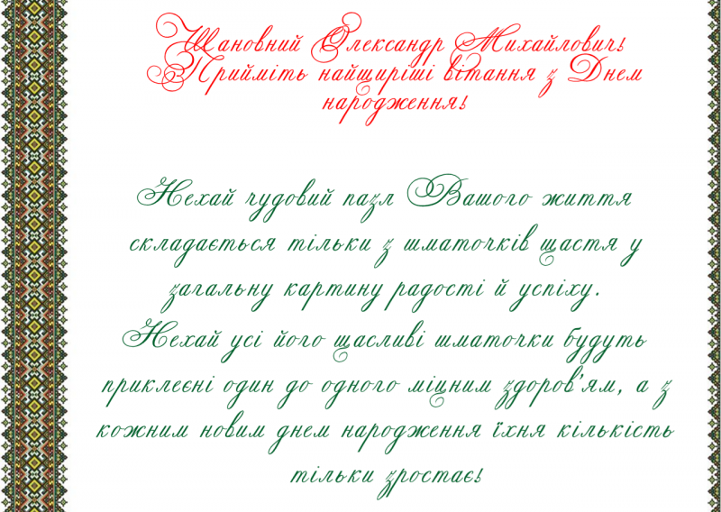 Вітаємо з Днем народженням доцента кафедри адміністративного менеджменту та зовнішньоекономічної діяльності Олександра ФАЙЧУКА Колектив факультету чт, 1 лис 2018 - 02:00