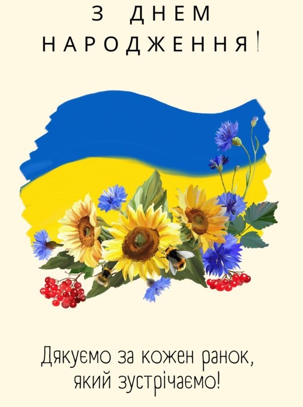 У цей важливий для тебе день ти борониш нашу землю і ми хочемо висловити найщирішу вдячність і повагу за це. Ми бажаємо тобі незламності духу, мудрості, сили, спокою і мужності! Нехай кожен новий день дарує тобі натхнення для великих звершень, бажаємо здоров'я, сили та віри у кожному бою. Нехай кожна зірка на небі веде тебе до перемоги та безпечного повернення додому. Бажаємо відзначити наступний день народження в мирній і вільній Україні!