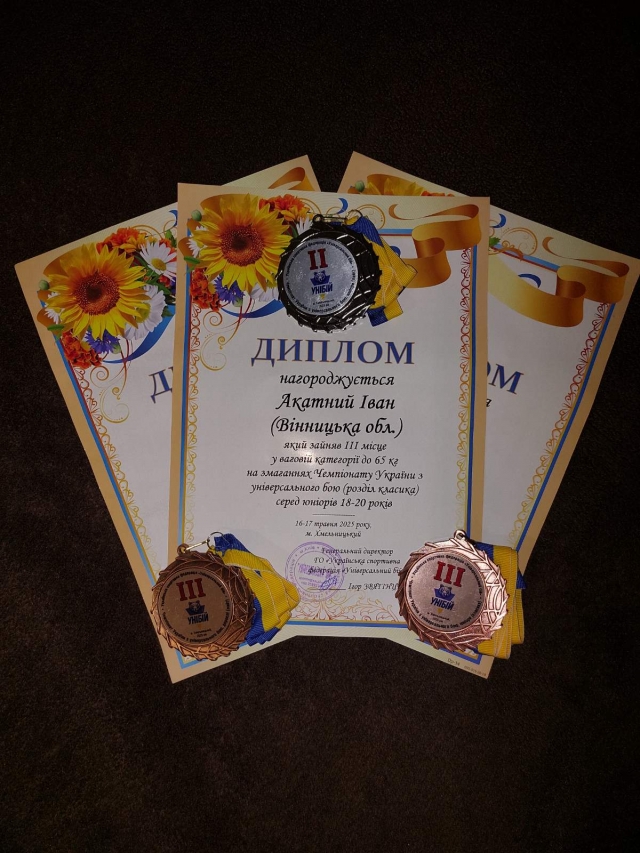 14–17 травня відбувся чемпіонат України з Універсального бою. Студент першого курсу агробіологічного факультету Іван Акатний здобув одразу три призові місця: