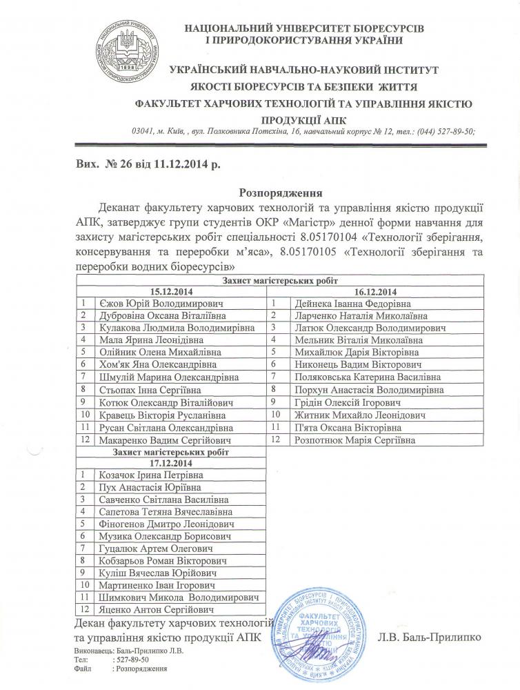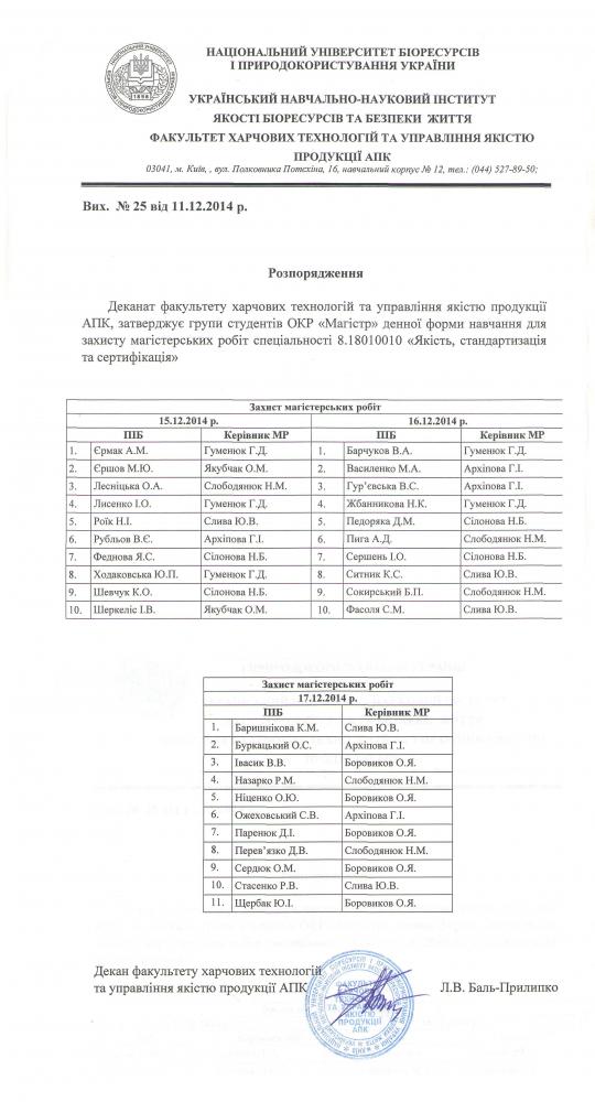 Вітаємо з успішним захистом магістрів факультету харчових технологій та управління якістю продукції АПК! чт, 18 гру 2014 - 02:00