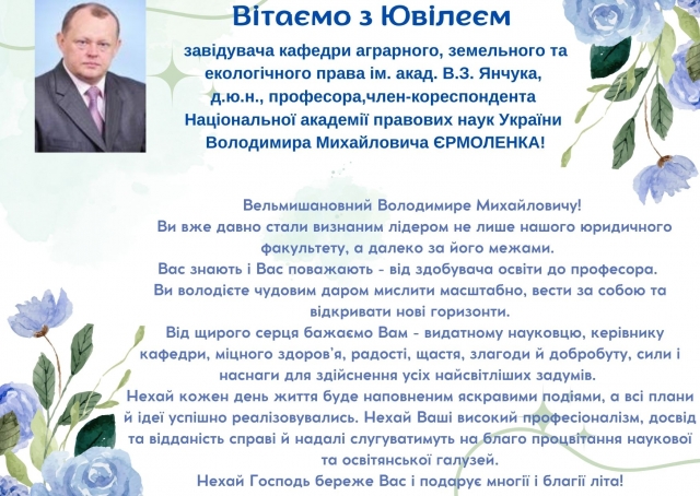 Вітаємо з Ювілеєм Володимира Михайловича Єрмоленка!