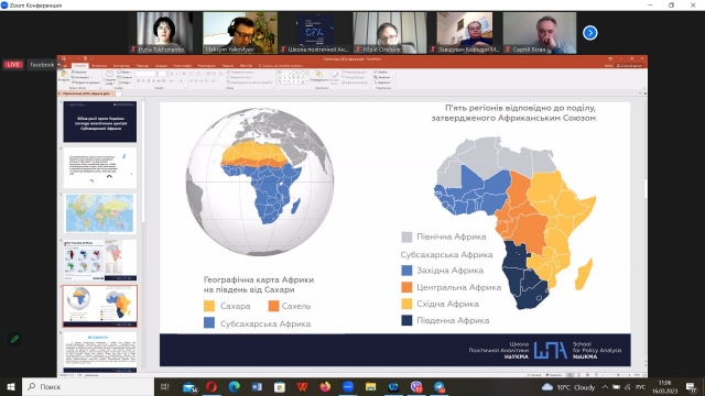16 березня Школа політичної аналітики НаУКМА в онлайн форматі презентувала синтез своїх матеріалів, в яких проаналізовані публікації аналітичних центрів Субсахарської Африки, присвячених Україні.