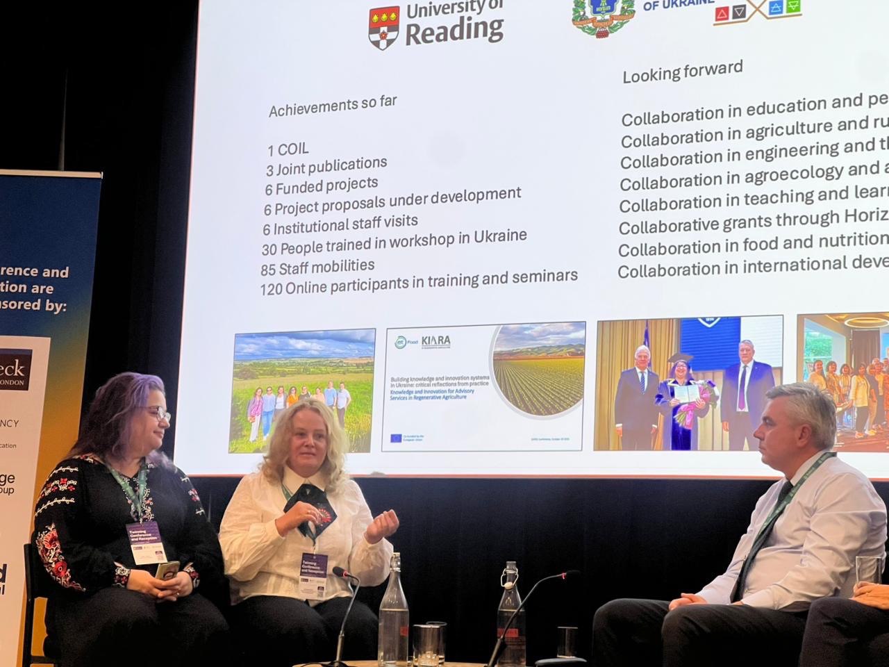 13 листопада Університет Birkbeck (University of London) приймав “Twinning Conference 2025” На цій конференції були присутні українські та британські університети, представники уряду та міжнародних організацій для підсумування трьох років співпраці в рамках UK-Ukraine Twinning Initiative «Twinning» —програми партнерства між британськими та українськими університетами, яка підтримує українські вузи під час війни та після неї. Обговорювали “історії успіху партнерств”, нові проєкти (наприклад, Seed Fund, Excellence Network). На панельних сесіях учасники ділилися досвідом, новими можливостями співпраці . Зокрема, одна з сесій була присвячена співпраці університету Редінг та НУБіП України, ії представляла доктор Сара КАРДІ та доцент кафедри філософії та міжнародної комунікації Алла КРАВЧЕНКО. Під час роботи конференції встановлено контакти з колегами з університету Ліверпуль, Королівського ветеринарного коледжу (University of London), університетом Birkbeck, Українським інститутом в Лондоні, а також колегами з українських університетів, що були учасниками конференції.