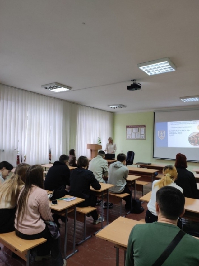 У продовження презентації Вікторія Сотник детально розповіла студентам про факультет аграрного менеджменту, зазначивши про його конкурентні переваги, що дають можливість підготувати висококваліфікованих фахівців із менеджменту та маркетингу, які затребувані на ринку праці. Відмітила при цьому те, що факультет аграрного менеджменту НУБіП України, в рейтинзі журналу Forbes, увійшов до 10-ки найкращих факультетів з менеджменту. Викладачі кафедри менеджменту ім. проф. Й. С. Завадського, під час зустрічі зі студентами коледжу, серед пріоритетних можливостей, які доступні здобувачам вищої освіти НУБіП України, зазначили можливість отримати подвійні дипломи університетів-партнерів, бути активним учасником заходу «Ярмарок вакансій», де студенти мають слушну нагоду більш детально ознайомитись із діяльністю провідних компаній, організаційних формувань різних сфер і галузей, отримати поради провідних фахівців-практиків стосовно працевлаштування, а також отримати «свіжу» інформацію про відкриті вакансії для працевлаштування. Студенти із цікавістю прослухали інформацію щодо вступу та перспектив навчання в Університеті, отримали змістовні відповіді на запитання. По завершенню зустрічі переважна більшість випускників висловили свої наміри й бажання продовжувати здобувати вищу освіту, зокрема в стінах НУБіП України на факультеті аграрного менеджменту.