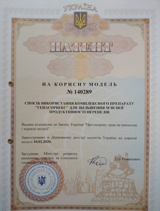 Наслідком тривалої, спільної роботи науковців кафедри технологій у птахівництві, свинарстві та вівчарстві славетного Національного університету біоресурсів і природокористування України та провідного підприємства з виробництва сорбентів мікотоксинів в Україні – ТОВ «ВетСервісПродукт» (м. Вишневе, Україна, [email protected]) стало створення комплексного препарату – сорбент мікотоксинів «Гепасорбекс». Склад кормової добавки «Гепасорбекс» містить наступні активні компоненти: кремнію діоксид; алюмінію оксид; магнію карбонат; титану діоксид; селен; кліноплеоліт; сухі пивні дріжджі.