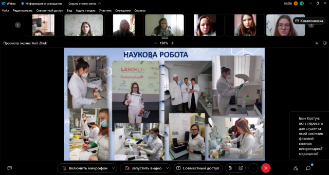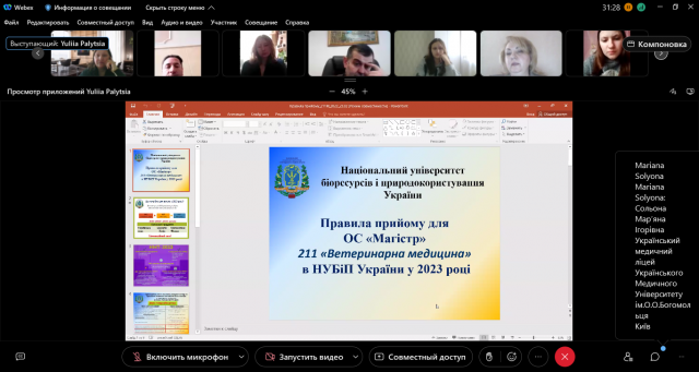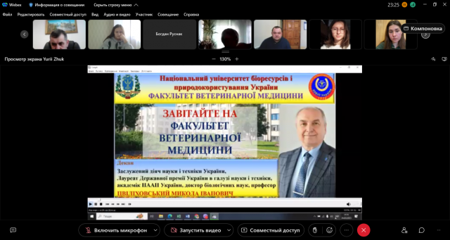 24 лютого 2023 року на факультеті ветеринарної медицини Національного університету біоресурсів і природокористування України проведено «День відкритих дверей» для випускників шкіл, гімназій, ліцеїв, фахових коледжів і технікумів України в режимі on-line з використанням платформи Cisco Webex. У «Дні відкритих дверей» взяли активну участь понад 200 учасників, які виявили бажання вступити на факультет ветеринарної медицини з 11 коледжів, технікумів і 116 загально освітніх шкіл, гімназій, ліцеїв м. Києва, Київської, Вінницької, Дніпропетровської, Житомирської, Закарпатської, Запорізької, Івано-Франківської, Львівської, Полтавської, Сумської, Хмельницької, Черкаської, Чернівецької, Чернігівської областей та республіки Польща.