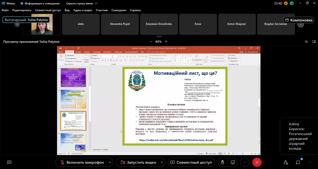 Секретар приймальної комісії Юлія Палиця ознайомила абітурієнтів з особливостями нинішньої вступної компанії. Вона детально зупинилася на здачі Національного мультипредметного тесту та підготовці мотиваційного листа, які необхідно подавати для вступу, наголосила на підготовчих курсах і участі в олімпіаді щодо вступу в Університет.