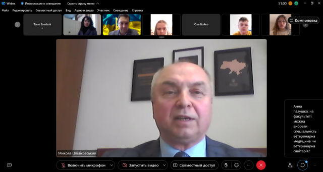 До майбутніх абітурієнтів із вітальним словом звернувся декан Микола Цвіліховський, який зазначив, що освідченні потужні кадри визначають майбутнє нашої держави. Хоча сьогоднішній «День відкритих дверей» відбувається дистанційно, відчувається позитивний настрій молоді, яка планує пов’язати своє подальше життя з ветеринарною медициною, наданням допомоги тваринам, готовністю оберігати людство від хвороб, і цим самим забезпечувати якість життя та безпеку кожної людини.