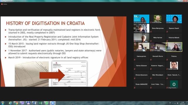 Пандемія COVID-19 значно прискорила впровадження нових електронних та цифрових послуг у адмініструванні земельних відносин. Цій темі був присвячений вебінар, що був організований 22 березня 2021 року Робочою групою з питань управління земельними ресурсами Європейської економічної комісії ООН (WPLA) та Продовольчою та сільськогосподарською організацією ООН (ФАО). На вебінарі були представлені тематичні дослідження з Великобританії, Хорватії та інших країн, а також дискусія за часті Боснії та Герцеговини.