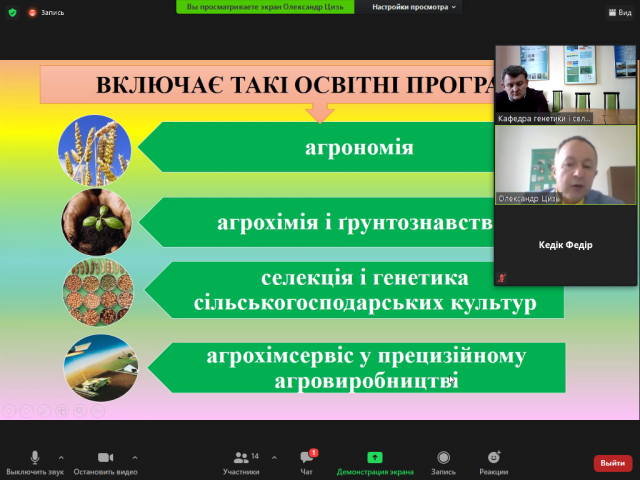 Олександр Цизь - заступник декана з профорієнтаційної роботи та Олександр Макарчук - завідувач кафедри генетики, селекції і насінництва ім. проф. М.О. Зеленського проінформували учасників конкурсу та керівників робіт про переваги, перспективи та умови вступу на агробіологічний факультет НУБіП України.