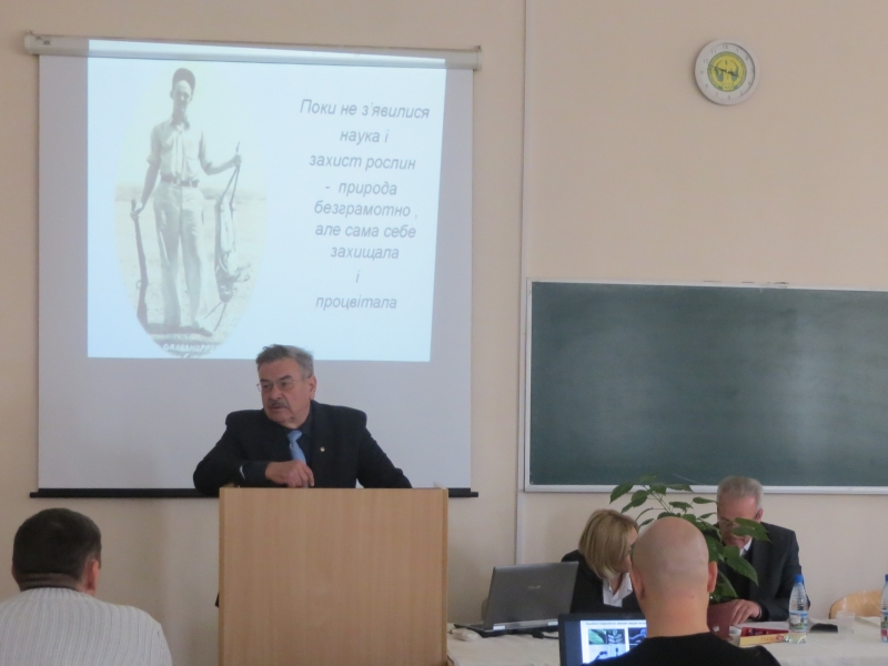 Про «Стан та перспективи розвитку захисту рослин в Україні» доповів Президент ГО «Українське ентомологічне товариство», д.б.н., академік НААН України, професор кафедри інтегрованого захисту і карантину рослин Віталій Петрович Федоренко, який звернув увагу на деякі зміни в ентомокомплексі шкідників в залежності від змін клімату в Україні, а також поділився досвідом інших країн, щодо вирощування та біологічного захисту сільськогосподарських культур (