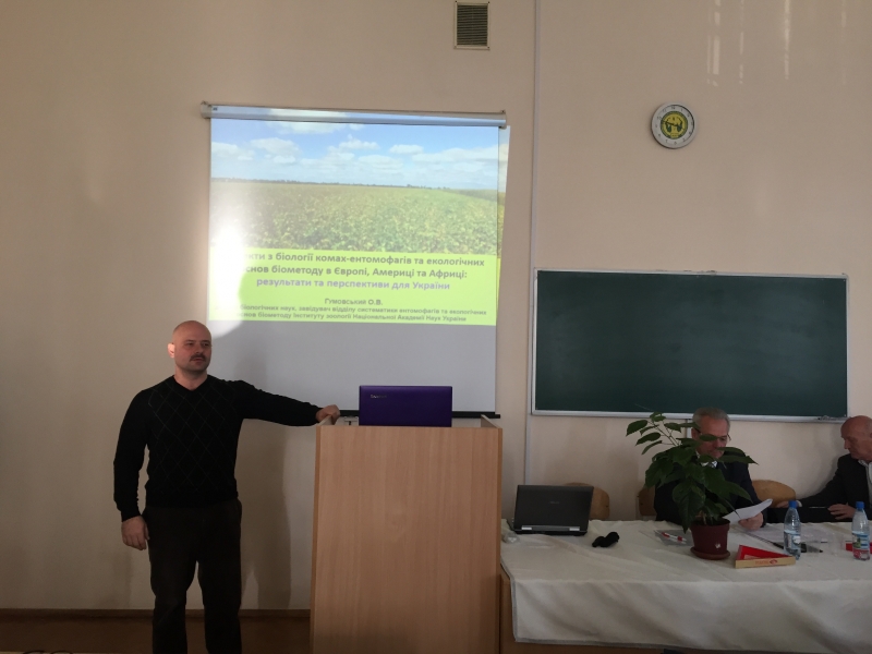 Унікальність сучасного ентомокомплексу шкідливих і корисних комах агроценозів в різних континентах світу висвітлена д.б.н., завідувачем відділу систематики ентомофагів та екологічних основ біометоду Інституту зоології ім. І.І. Шмальгаузена НАН України Олексієм Васильовичем Гумовським в доповіді на тему: «Проекти з біології комах-ентомофагів та екологічних основ біометоду в Європі, Америці та Африці: результати та перспективи для України»