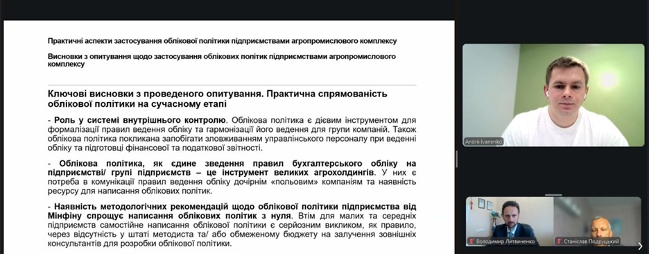 Андрій ІВАНЕНКО, фінансовий контролер групи компаній Wix.com Ltd., представив сучасні підходи до формування облікової політики підприємств агросфери. Він підкреслив значення побудови ефективної системи внутрішнього контролю, використання аналітичних інструментів та автоматизації звітності.