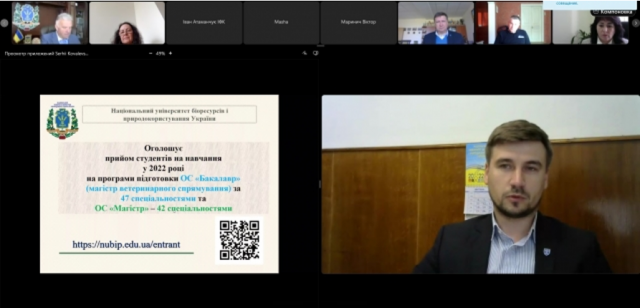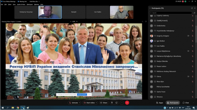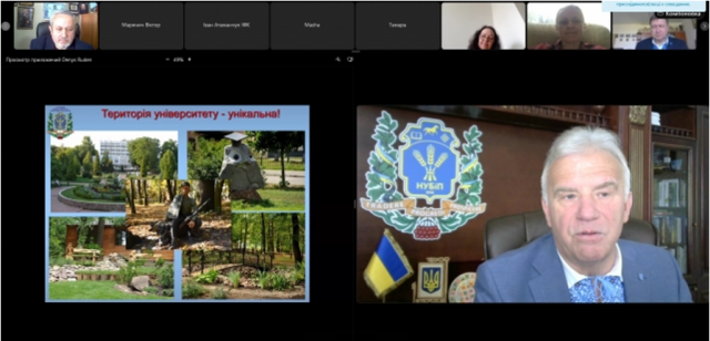 Онлайн зустріч на університетському майданчику розпочалась з інформативного і наповненого цікавими фактами з історії та сьогодення НУБіП України виступу ректора академіка Станіслава Ніколаєнка.