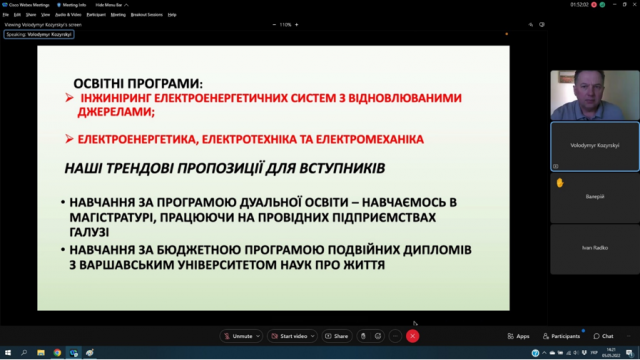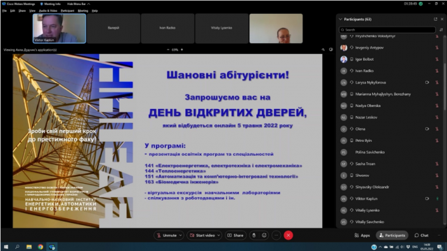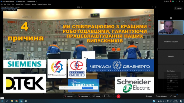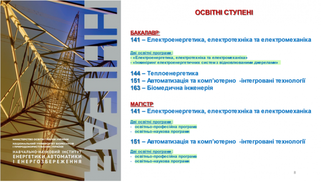 Презентував ННІ енергетики, автоматики і енергозбереження директор Віктор Каплун, а інформацію про особливості фахової підготовки у розрізі спеціальностей представили завідувачі кафедр та гаранти освітніх програм Володимир Козирський, Євген Антипов, Віталій Лисенко, Лариса Нікіфорова.