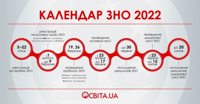Реєстрація для участі в ЗНО – з 1 лютого 2022р. до 9 березня 2022 р.