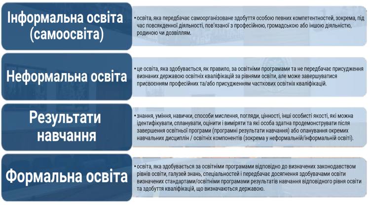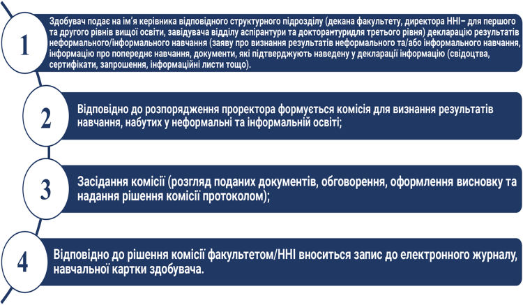 За раніше висловленими побажаннями студентів надати їм роз’яснення щодо оцінювання рівня знань здобувачів вищої освіти, здобутих за програмами неформальної освіти, висвітлено ці питання. Вказано на нормативно-правові документи, які регламентують процедуру визнання результатів, отриманих у неформальній освіті: стаття 8. Закону України “Про освіту” (2017 р.); Порядок визнання у вищій та фаховій передвищій освіті результатів навчання, здобутих шляхом неформальної та/або інформальної освіти, затверджений Наказом Міністерства освіти i науки України 08.02.2022 № 130, зареєстрований в Міністерстві юстиції України 16.03.2022 № 328/37664 та відповідних офіційних документах НУБіП України.