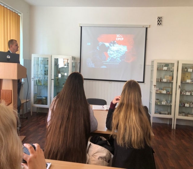 Куратор розповів про героїчні сторінки історії, наголосивши на ролі українців у спільній перемозі над нацизмом. Студенти дізналися про значущі події війни, участь українських військових у ключових битвах, а також про вклад мирного населення, яке працювало в тилу та допомагало армії.