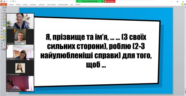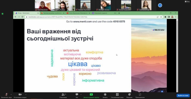 У період дистанційного навчання зустрічі були онлайн з використанням платформи Zoom. Під час таких зустрічей доцент Тюріна Альона презентувала студентам методики формування власної місії та оцінки цінностей, проводила підготовку до участі у студентській олімпіаді (фаховій та з окремих дисциплін) та студентських конкурсах, зокрем таких як "3 хвилини Пітчу", разом зі студентами обговорювали поточні питання освітнього процесу та студентського життя.