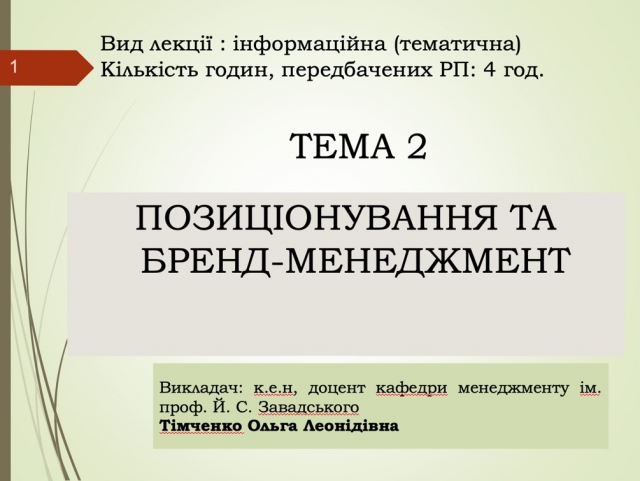 4 вересня 2024 року на кафедрі менеджменту ім. Й.С. Завадського Національного університету біоресурсів і природокористування України відбулася відкрита лекція кандидата економічних наук, доцента Тімченко Ольги Леонідівни з дисципліни Бренд-менеджмент на тему «Позиціонування та бренд-менеджмент».