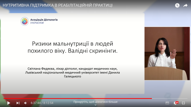 - «Нутритивна підтримка на етапі реабілітації пацієнтів з серцево-судинною та судинно-мозковою патологією»;