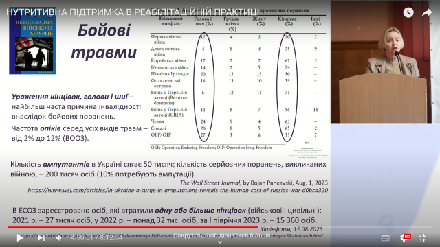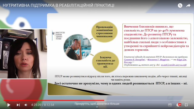 - «Нутритивний супровід пацієнтів з травмами, ампутаціями, опіками, посттравматичним стресовим синдромом»;