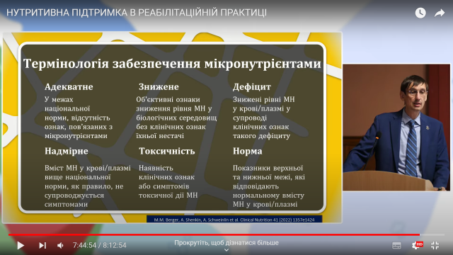 - «Динамічний нутритивний супровід у запобіганні та лікуванні дефіциту мікронутрієнтів у реабілітації пацієнтів».