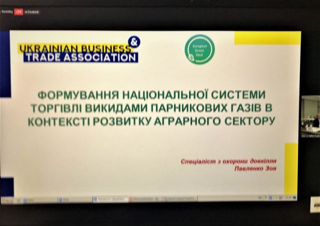 Не менш цікавою виявилась доповідь експерта з охорони навколишнього середовища UBTA Павленко Зої на тему «Формування національної системи торгівлі викидами парникових газів в контексті розвитку аграрного сектору», в якій вона акцентувала увагу учасників на місці агросектору на вуглецевих ринках ЄС та Китаю. Більше того, доповідач наголосила на тих уроках, які має винести Україна у даній сфері.