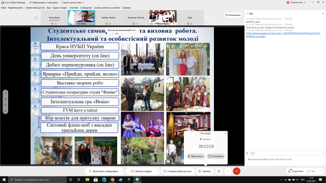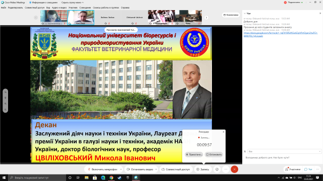 В рамках профорієнтаційних заходів факультету ветеринарної медицини, спрямованих на залучення до вступу у НУБіП України кращих абітурієнтів, 23 березня 2021 року викладачі кафедри акушерства, гінекології та біотехнології відтворення тварин у повному складі провели навчальний онлайн-семінар на тему «Сучасні біотехнологічні методи у ветеринарній репродуктології» для студентів 3-4 курсів ветеринарного відділення Млинівського державного технолого-економічного коледжу (Рівненська область).