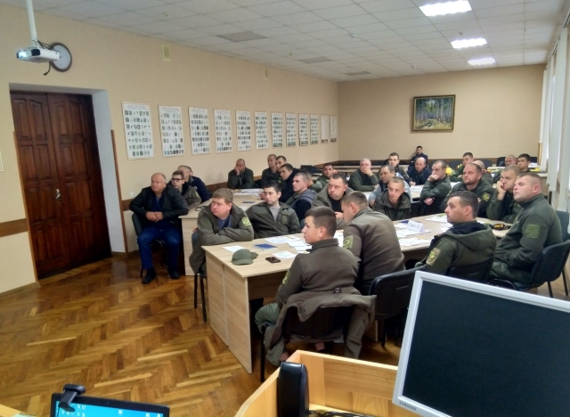 Учасники курсу лісового пожежника під час лекційних занять