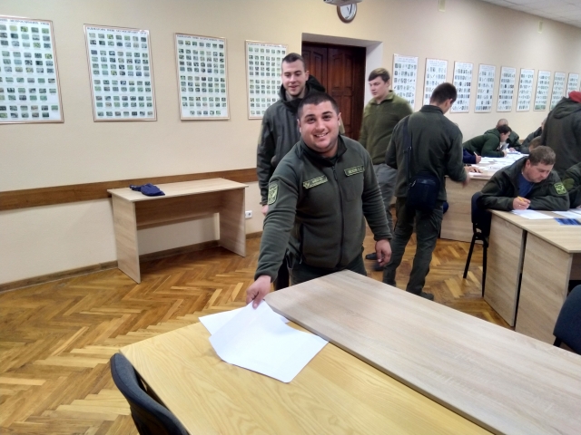 Слухачі курсу під час екзамену витягують білети з теоретичними запитаннями