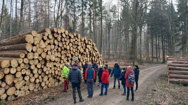 З метою вивчення практичного досвіду ведення лісового господрства в Швейцарії, під час стажування було організовано екскурсію в ліси кантону Цюрих - Штамхейм (Stammheim), де лісничий Крістіан Боттланг розповів про лісове господарство, ланцюги постачання та особливості переробки деревини в регіоні Штаммхейм. Зокрема було продемонстровано порушення штучних ялинових лісів шкідниками де було проведено суцільні санітарні рубки. лісничий розповів про підходи лісовідновлення та поточну стратегію господарювання в лісах кантону Цюриха. Нині особлива увага приділена корінним видам та природному поновленю, хоча штучне заліснення ділянок також застосовується там де природнього поновлення недостатньо. Вагомою відмінністю порівняно з Україною є власність на ліси - в Швейцарії близько 98% всіх лісів знаходяться у приватній власності, тоді як в Україні цей показник становить менше 3 %. Така ситуація ускладнює господарювання адже лісогосподарській організації потрібно погоджувати діяльність з усіма власниками, які зазвичай наділені дрібними наділами площею 1-5 га. В Швейцарії застосовують вибіркову систему рубок головного користування, за якої вирубуються цільові дерева, які досягли відповідних (комерційних) розмірів. Суцільні рубки застосовуються лише у випадку загибелі насадження.