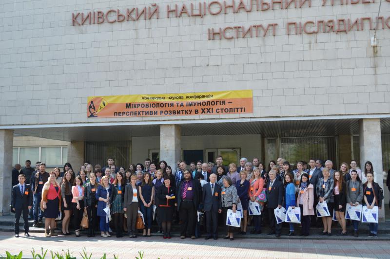 Учасники конференції сфотографувалися на згадку біля корпусу післядипломного навчання, де проходило пленарне засідання. А в.о. завідувача кафедри мікробіології, вірусології та біотехнології, професор Мазур Тетяна Василівна, професор Яблонська Оксана Валентинівна і доцент Козловська Анна Володимирівна сфотографувалися ще й із організатором конференції, завідувачем кафедри мікробіології та загальної імунології Київського національного університету імені Тараса Шевченка професором Сківкою Ларисою Михайлівною. Наступного дня учасники секційних засідань сфотографувалися на згадку у корпусі біологічного факультету, де проходили секційні засідання та нагородження аспірантів-учасників ІІ Міжнародної наукової конференції “Мікробіологія та імунологія – перспективи розвитку в XXI столітті”.