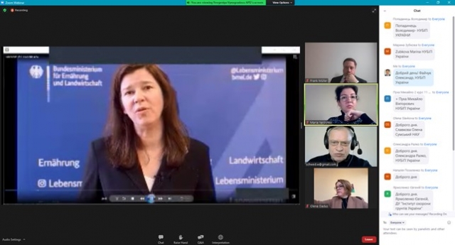 Усвідомлюючи масштаб продовольчих викликів, представники Німецько-українського агрополітичного діалогу (APD, Україна) спільно з експертами з Лейбніц-Інституту аграрного розвитку в країнах з перехідною економікою (IAMO, Німеччина), Київською школою економіки (KSE, Україна), Вагенінгенським університетом та науково-дослідним центром (WUR, Нідерланди) провели 13.04.2022 р. панельну дискусію на тему: «Зміни в аграрній політиці в Україні – шанси та можливості у стані війни». Метою заходу було об’єднання наукових та прикладних поглядів на поточні загрози щодо передбачення впливу військових дій на локальні та глобальні агропродовольчі ринки задля розробки кваліфікованих рекомендацій для українського суспільства із даної проблематики.