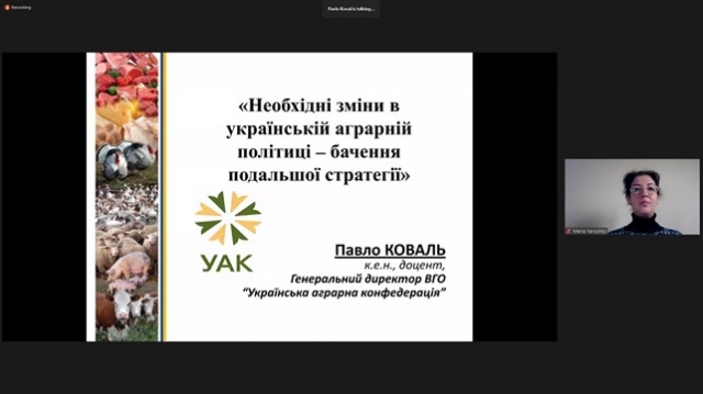 У свою чергу, Павло Коваль, генеральний директор ВГО «Українська аграрна конфедерація», повідомив учасників онлайн-дискусії про необхідні зміни в українській аграрній політиці в контексті підприємницького бачення подальшої стратегії. Зокрема, у своїй доповіді він зупинився на методичних засадах формування компетенції стратегування, де особливе місце має посісти експертно-аналітичний центр стратегування АПК. Причому Павло Коваль твердо переконаний в тому, що розробці стратегій розвитку аграрного сектору України має обов’язково передувати образ майбутнього, концепція і доктрина.