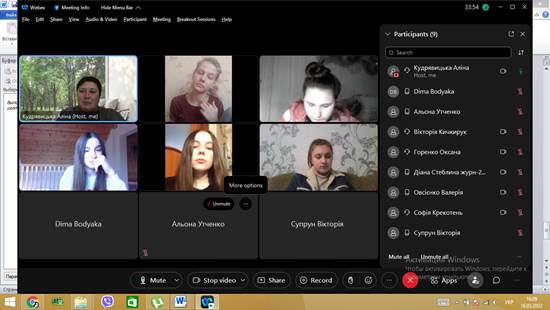 Студенти 1 курсу 1 та 3 групи спеціальності 061 Журналістика» гуманітарно-педагогічного факультету та студенти 1 курсу ОС Бакалавр спеціальності 151 Автоматизація та комп’ютерно-інтегровані технології ННІ енергетики, автоматики і енергозбереження на першій, другій та п’ятій парах в режимі відеоконференції Cisco Webex також вивчали дисципліну «Безпека праці та життєдіяльності», яку забезпечує доцент кафедри Аліна Кудрявицька.