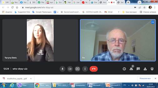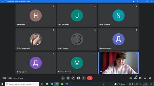Старший викладач Анна Сальнікова за середу 16 березня 2022 року в режимі онлайн також провела чотири заняття з дисципліни «Безпека праці та життєдіяльності» для студентів 3 курсу ОС Бакалавр спеціальності 201 Агрономія Агробіологічного факультету та студентів 1 курсу скороченого терміну спеціальності 206 Садово-паркове господарство.